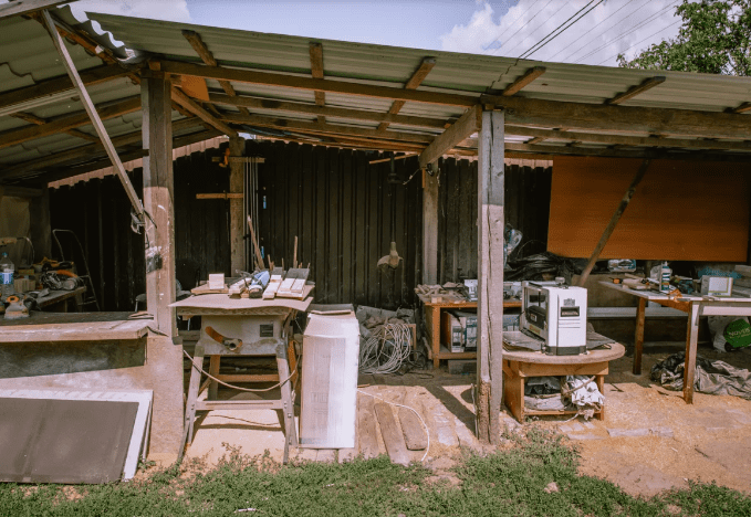 Творча майстерня Світлани знаходиться у дворі. Під невеликим навісом стоять столи та робочі інструменти. У майбутньому мама-столяр планує її вдосконалити.